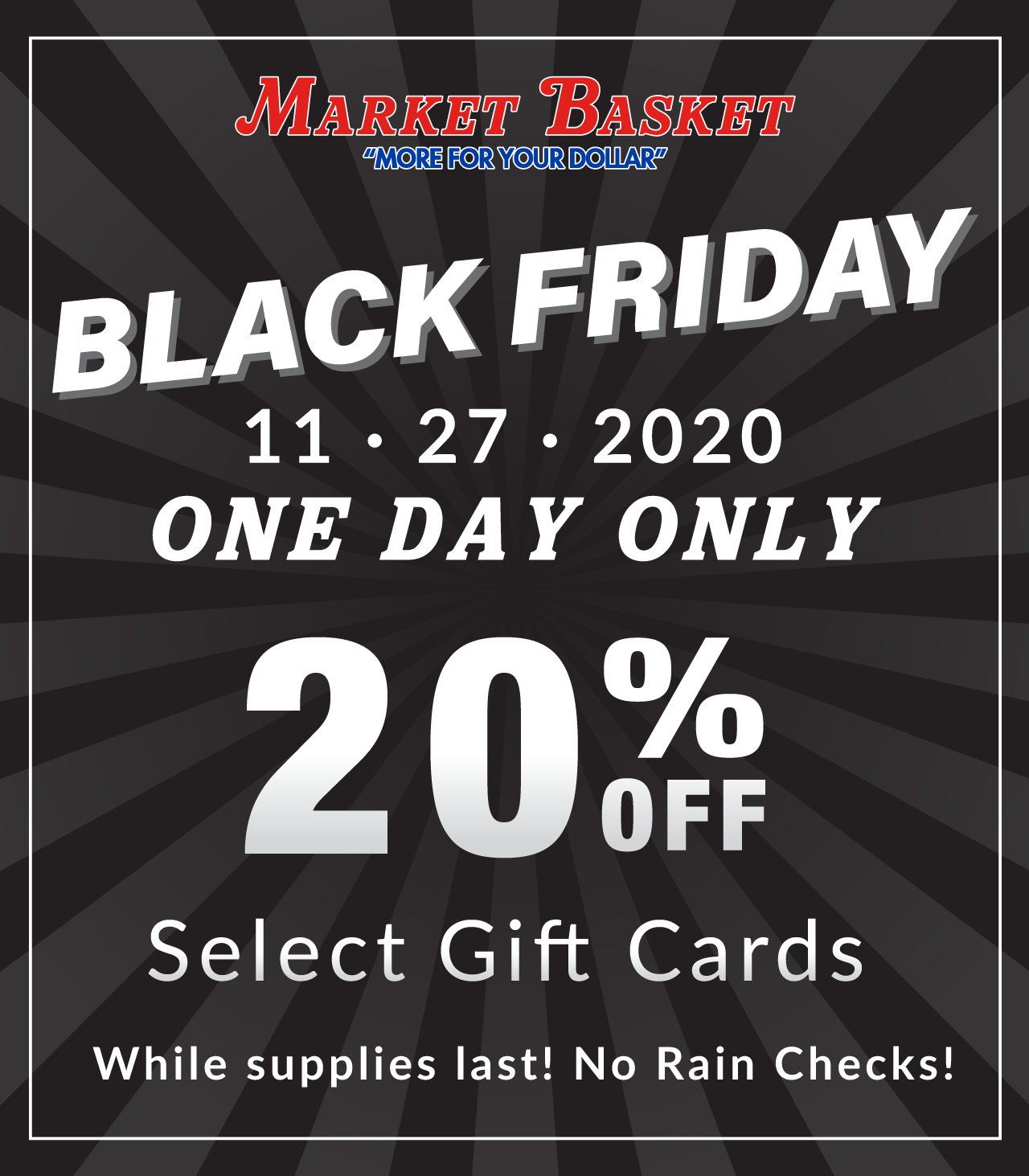 Market Basket On Twitter Don T Miss Our Best Gift Card Sale Of The Year On Black Friday Only Save 20 Off Select Gift Cards Get Moreforyourdollar On Holiday Shopping At Market